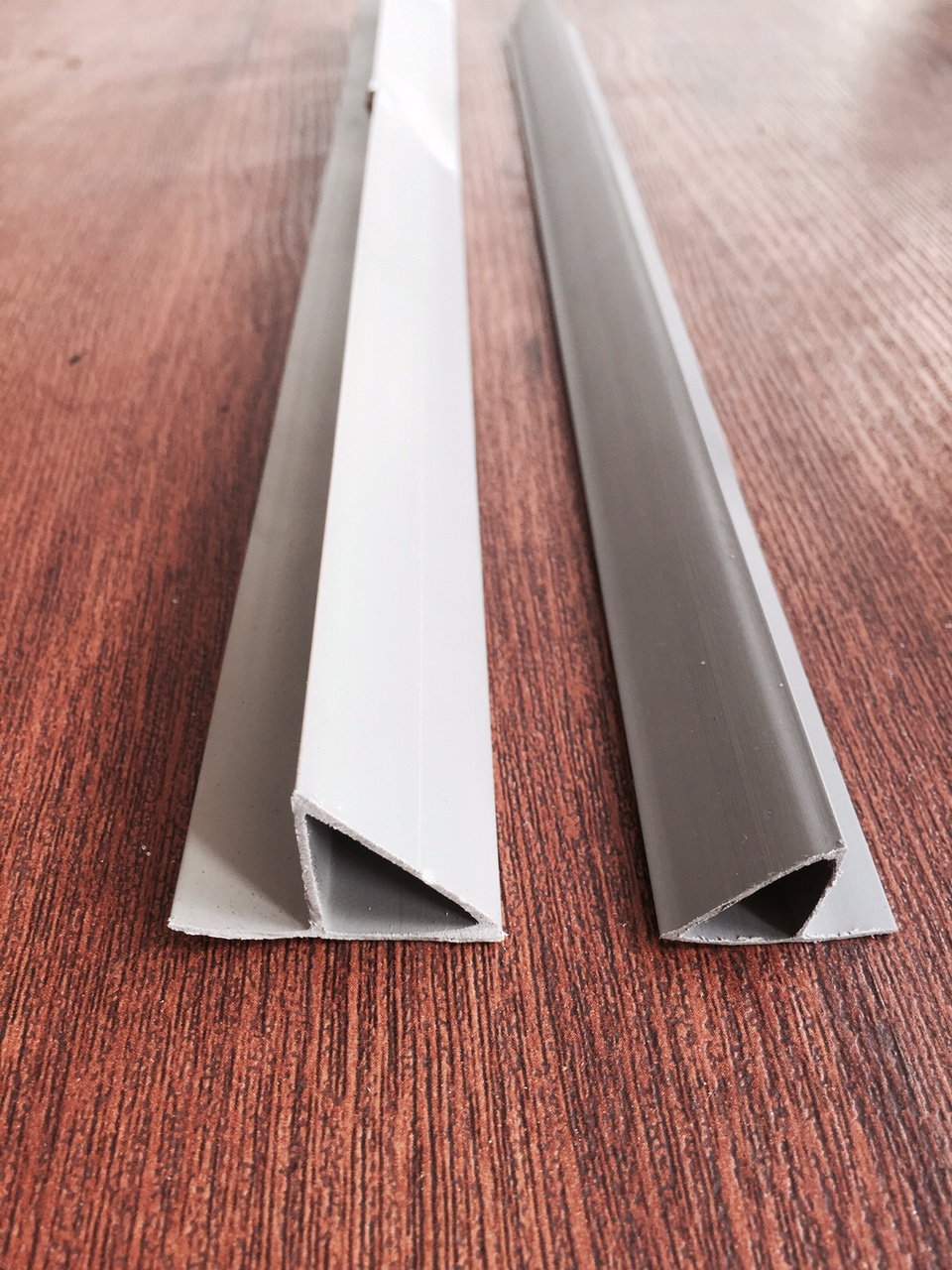 Especificaciones: Bisel en PVC en forma triangular con aleta para biselar los ángulos de las Columnas o esquinas de los muros. Producto de 2 mts de largo.